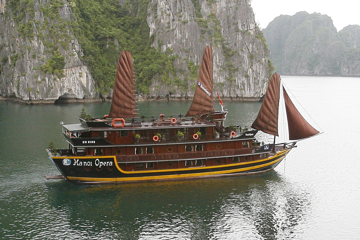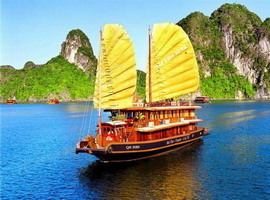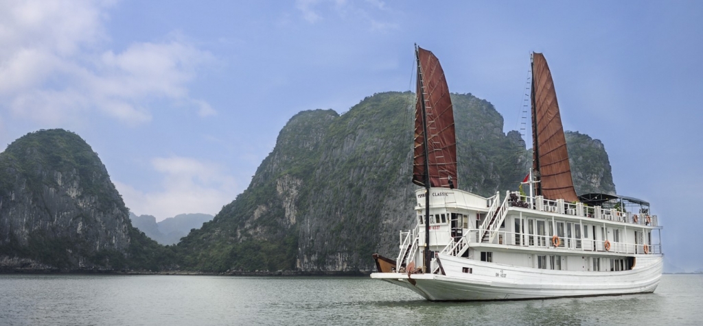 Giữa màu xanh biển cả Du thuyền Hạ Long Clasic Sail hiện lên những cánh buồm đỏ thắm. Hàng ngàn ngọn núi lướt qua, âm thầm như trong một bộ phim không tiếng. Về phía Ðông, cầu Bãi Cháy ...